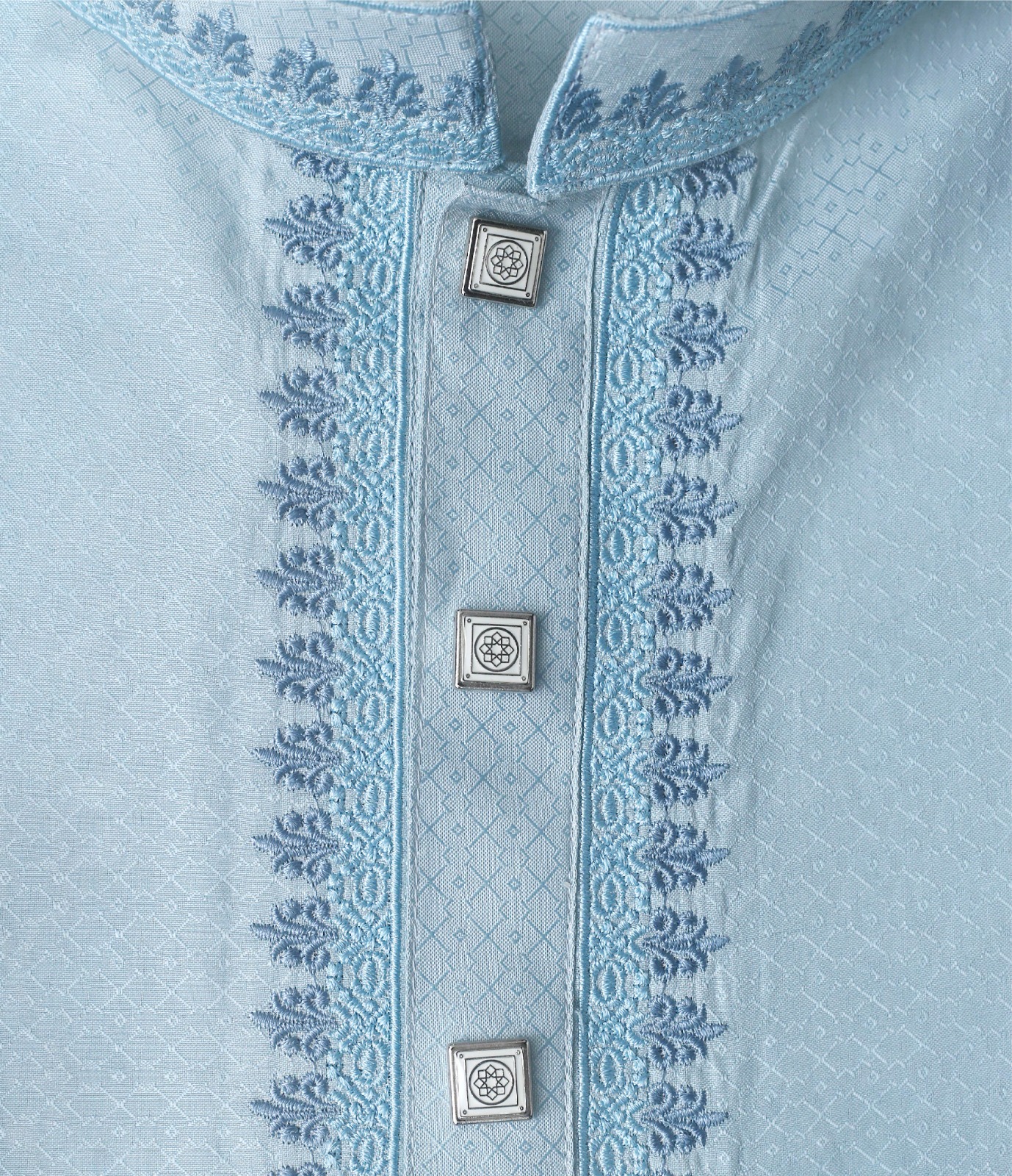 Key Features: -High-quality cotton-rich fabric for comfort and longevity -Slim fit cut for a modern, tailored appearance -Elegant pale turquoise color with a rich, premium look -Lightweight, breathable, and skin-friendly feel -Suitable for Eid, festivals, social events, and formal ethnic occasions
